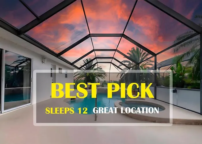 The 4-bedroom Stunning 5 Bedroom Pool Home Hot Tub 10 Mins To Disney, located very close to Mystic Dunes Lane, entices guests with an outdoor pool as well as a Jacuzzi and an indoor pool to relax in.